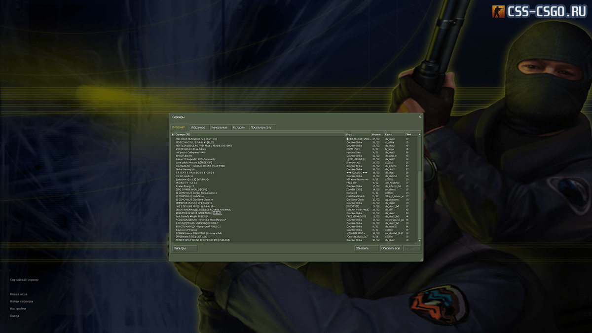 Современный интерфейс: Меню переработано в сторону удобства и чёткости, добавлена поддержка аватарок других игроков steam, — и всё это в духе классического стиля КС 1.6.